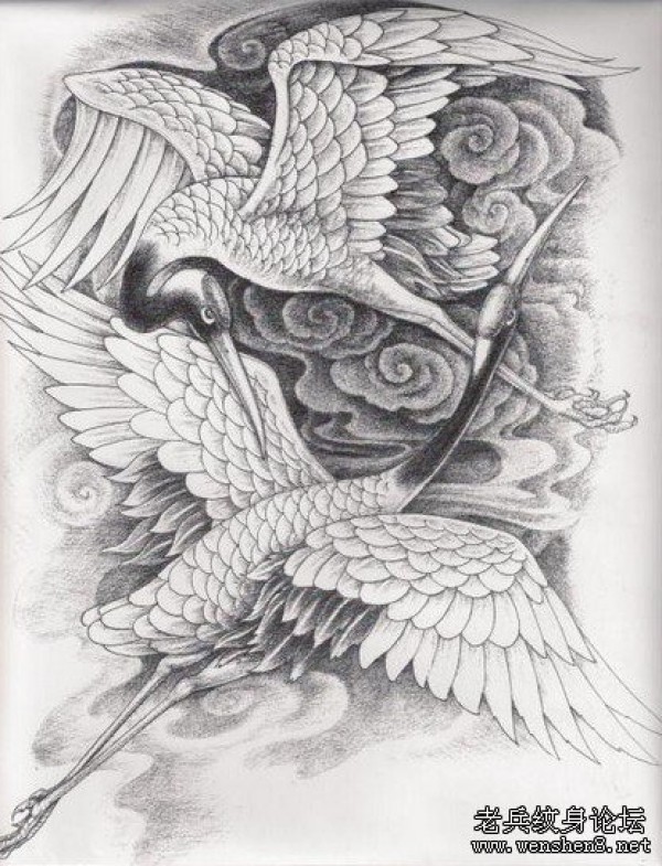 武汉纹身的店为你提供一款满背白鹤丹顶鹤纹身_后背纹身图案大全_纹身图吧