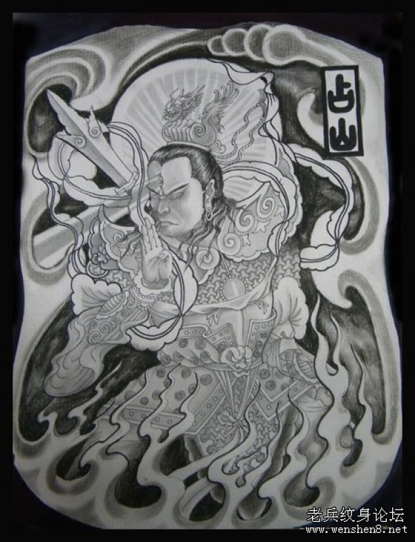 二郎神纹身图案大全超酷超赞的满背二郎神纹_后背纹身图案大全_纹身图吧