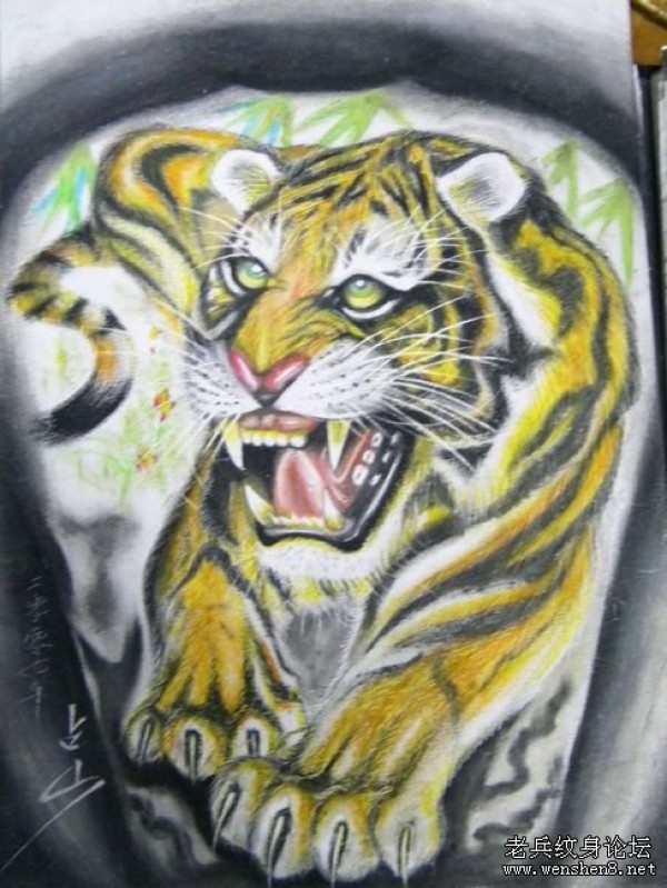 老虎纹身图案大全满背彩色老虎纹身图案大全_后背纹身图案大全_纹身图吧