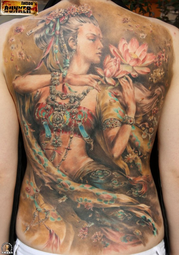满背敦煌飞天纹身图案_后背纹身图案大全_纹身图吧