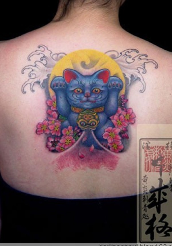 背部招财猫纹身_后背纹身图案大全_纹身图吧