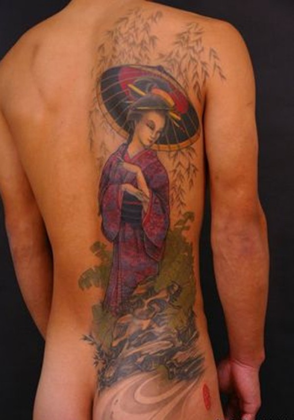 背部日本和服美女纹身_后背纹身图案大全_纹身图吧