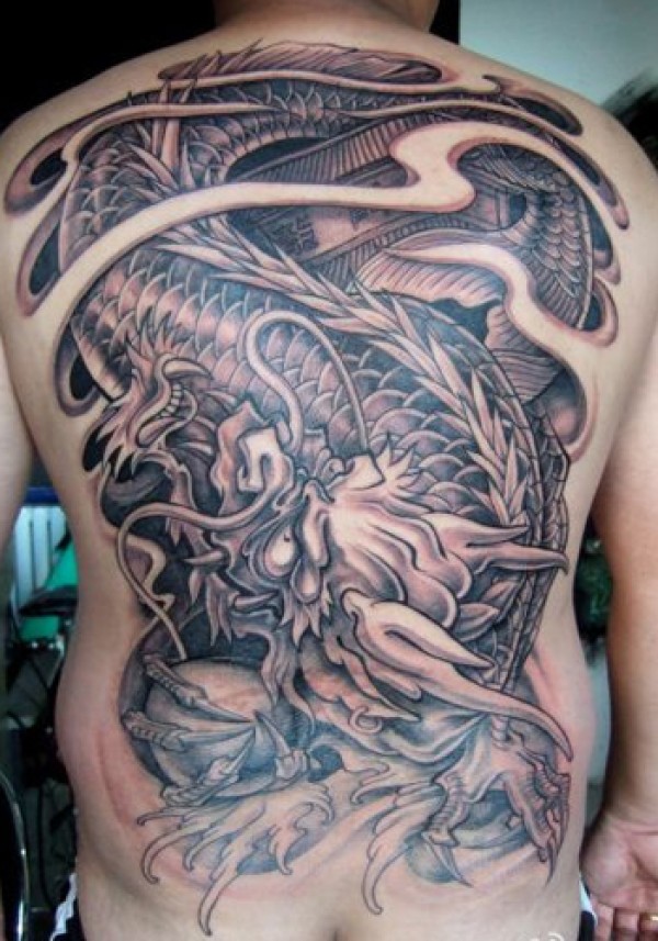 霸气的满背鳌鱼纹身_后背纹身图案大全_纹身图吧
