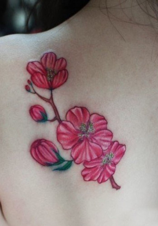 美女背部梅花纹身_后背纹身图案大全_纹身图吧