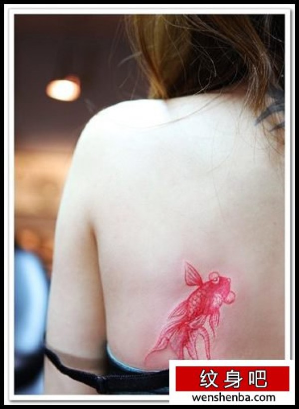 后背好看的红色小金鱼纹身图案_后背纹身图案大全_纹身图吧