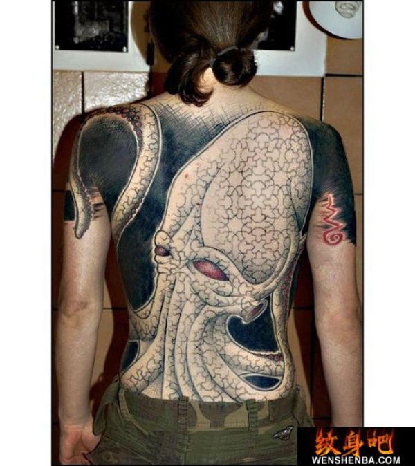 满背抽象章鱼_后背纹身图案大全_纹身图吧