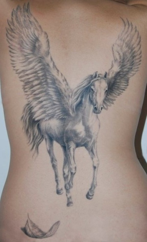 后背素描独角兽纹身_后背纹身图案大全_纹身图吧