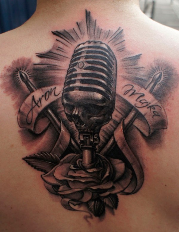 背部麦克风纹身_后背纹身图案大全_纹身图吧