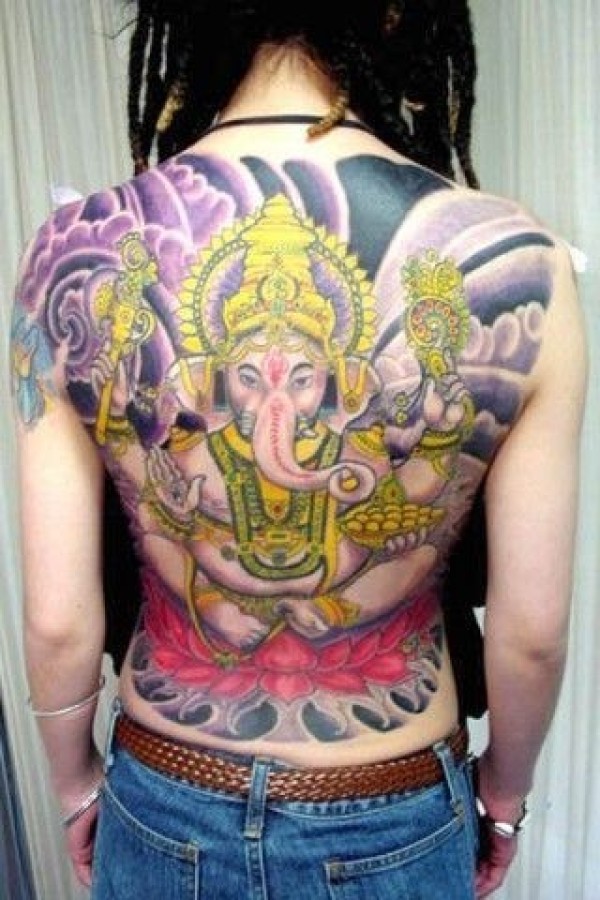 满背彩色象神纹身_后背纹身图案大全_纹身图吧