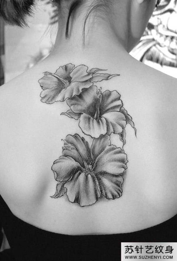 扶桑花背部纹身_后背纹身图案大全_纹身图吧