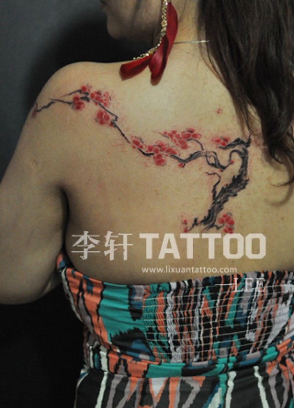 李轩作品后背纹身梅花纹身_后背纹身图案大全_纹身图吧