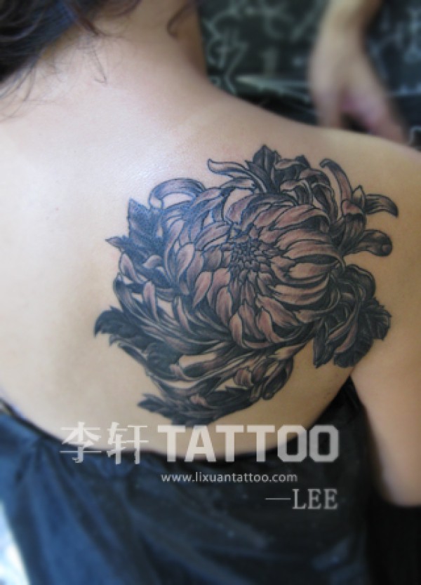 李轩作品后背菊花纹身图案_后背纹身图案大全_纹身图吧