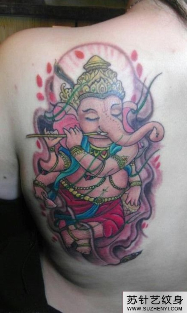 吹笛子象神背部纹身图_后背纹身图案大全_纹身图吧