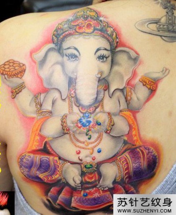 背部象神图案纹身_后背纹身图案大全_纹身图吧