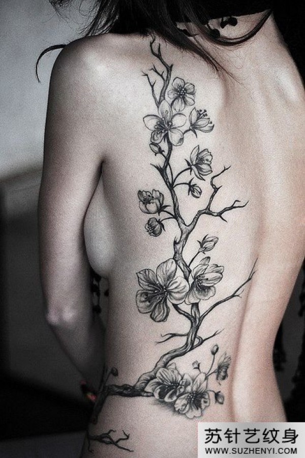 美女背部梅花纹身_后背纹身图案大全_纹身图吧