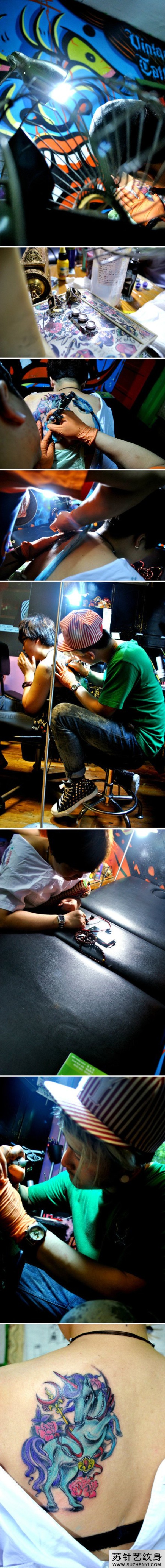 后背唯美可爱时尚宗教独角兽纹身现场_后背纹身图案大全_纹身图吧