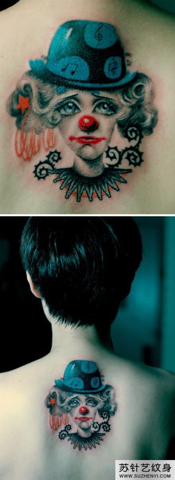 时尚创意悲伤的小丑后背纹身_后背纹身图案大全_纹身图吧
