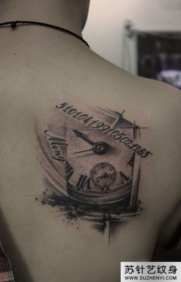 创意个性抽象时间数字背部纹身_后背纹身图案大全_纹身图吧