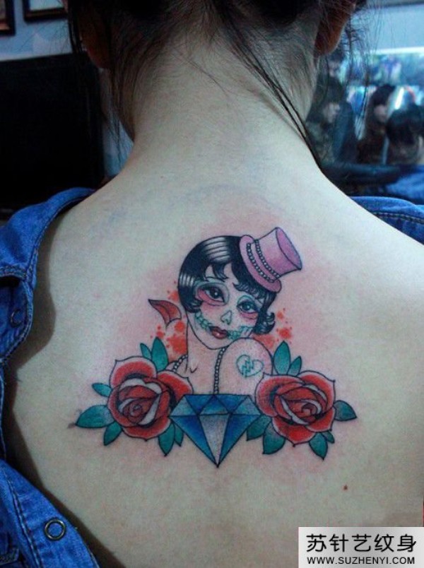 完美时尚个性美女头像背部纹身_后背纹身图案大全_纹身图吧