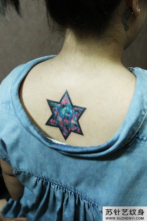 后背六芒星里的璀璨星空纹身_后背纹身图案大全_纹身图吧
