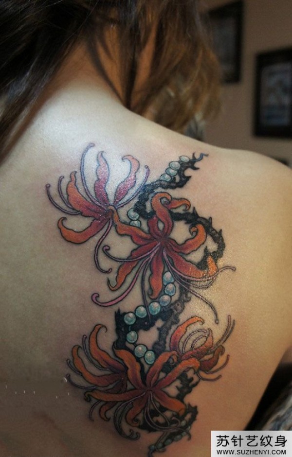 背部彼岸花纹身分享_后背纹身图案大全_纹身图吧