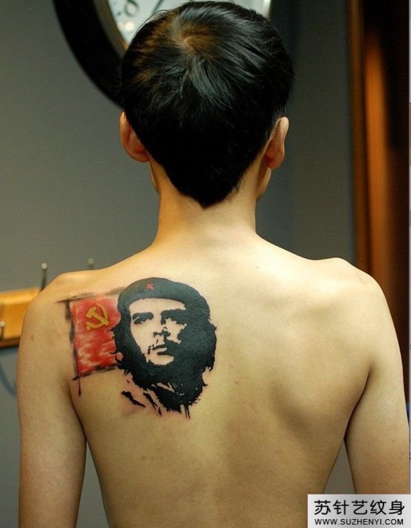 后背创意红军头像个性纹身图_后背纹身图案大全_纹身图吧