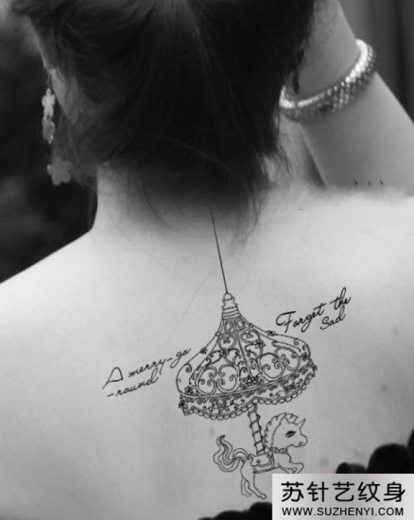后背唯美简易旋转木马纹身_后背纹身图案大全_纹身图吧