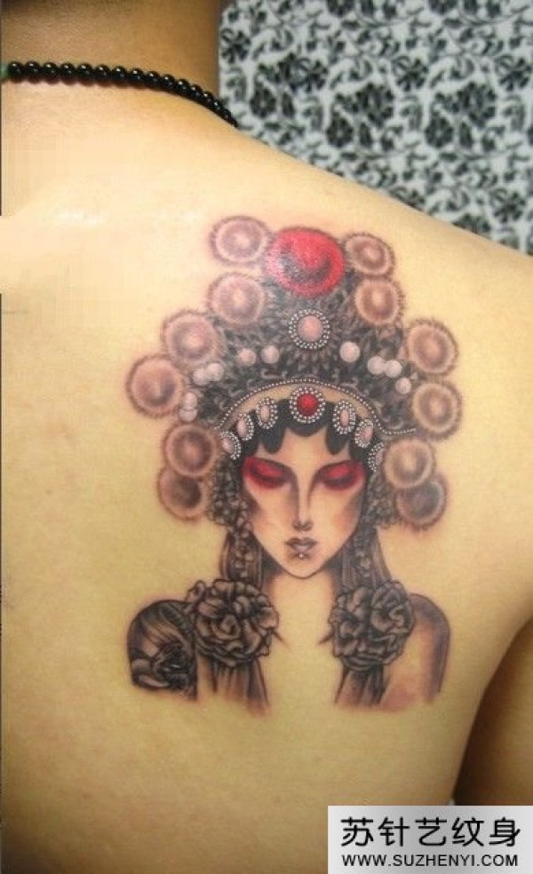 时尚中国戏曲花旦头像背部纹身图_后背纹身图案大全_纹身图吧