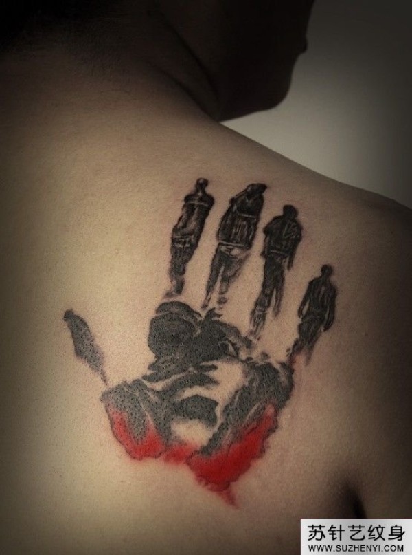 后背创意个性致命血手印纹身_后背纹身图案大全_纹身图吧
