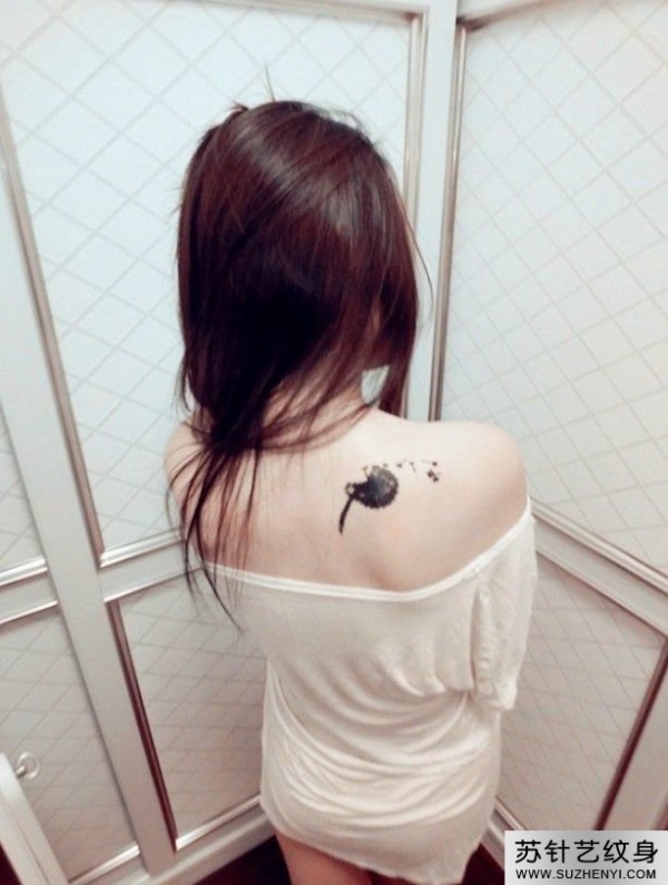 后背唯美简易飞舞蒲公英纹身_后背纹身图案大全_纹身图吧