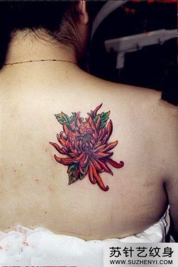 后背最新时尚菊花刺青图片_后背纹身图案大全_纹身图吧