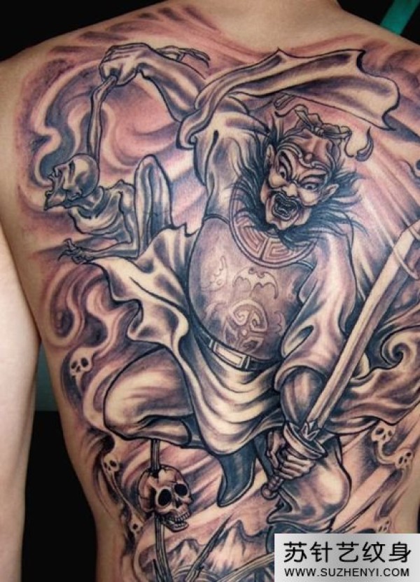 后背神武钟馗捉小鬼刺青_后背纹身图案大全_纹身图吧