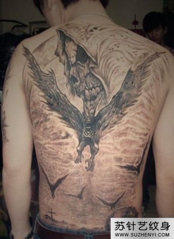 男人满背另类霸气死神纹身_后背纹身图案大全_纹身图吧