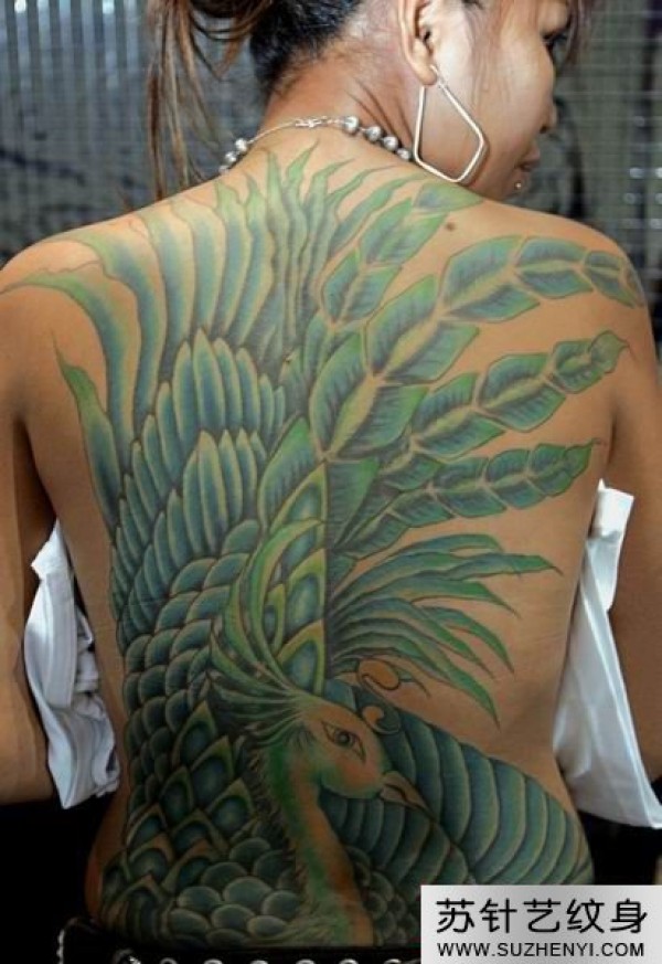 后背最新时尚青鸟纹身_后背纹身图案大全_纹身图吧