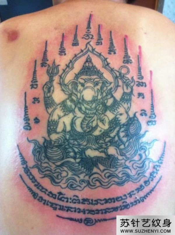 后背个性泰国象神纹身图案_后背纹身图案大全_纹身图吧