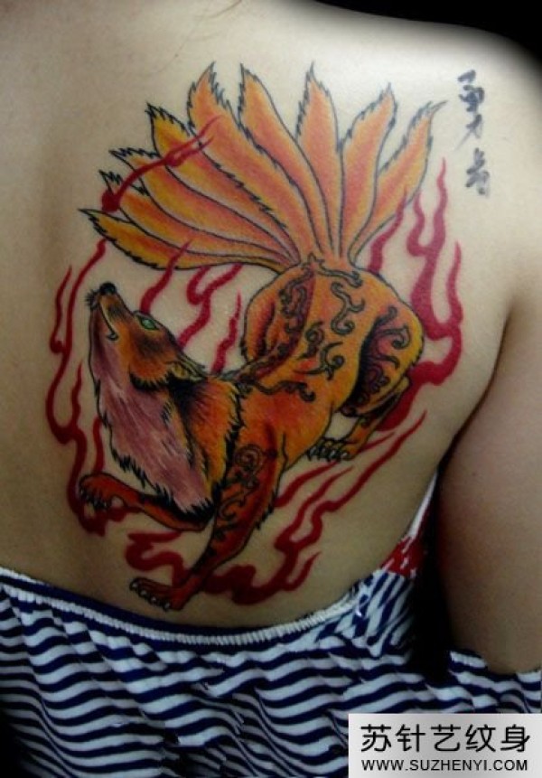 霸气美女后背狼个性纹身图片_后背纹身图案大全_纹身图吧