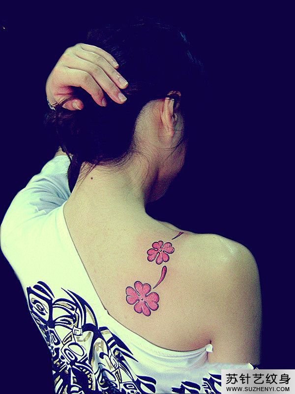 美女背部梅花纹身_后背纹身图案大全_纹身图吧