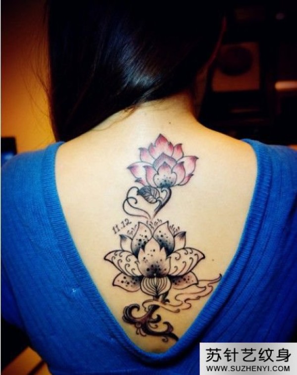 女孩背部时尚创意莲花纹身_后背纹身图案大全_纹身图吧