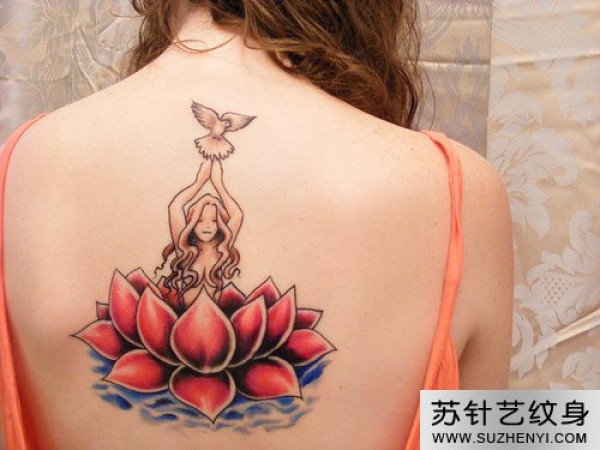 后背莲花坐台美女纹身图_后背纹身图案大全_纹身图吧