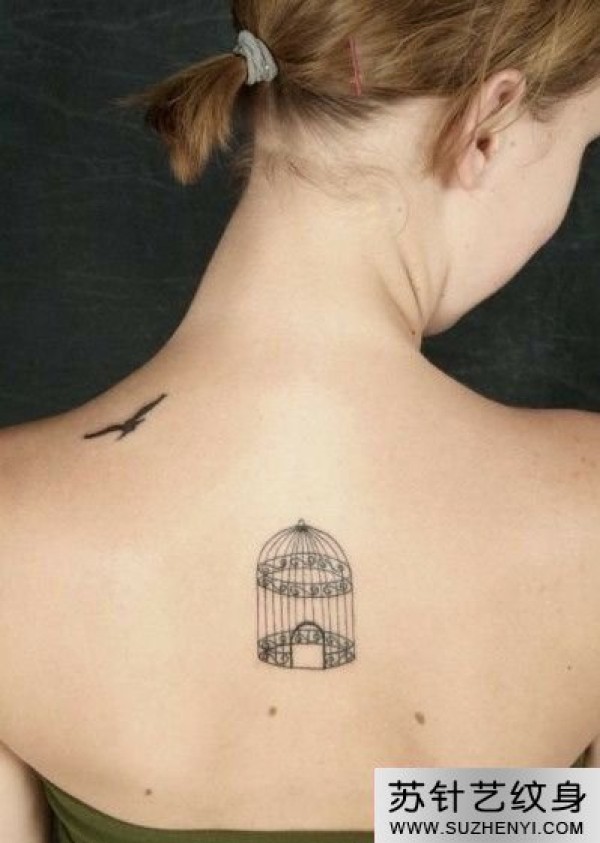 后背落寞鸟笼时尚纹身图_后背纹身图案大全_纹身图吧