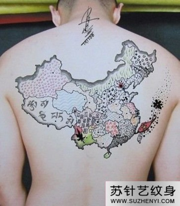 背部个性中国地图纹身图案_后背纹身图案大全_纹身图吧