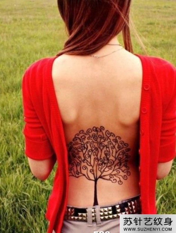 背部可爱时尚树纹身_后背纹身图案大全_纹身图吧