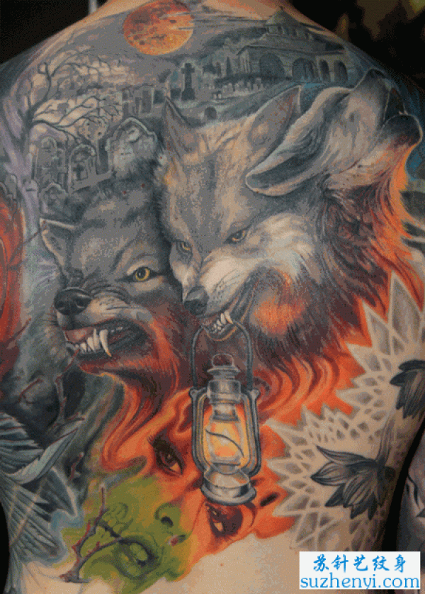 满背狼纹身_后背纹身图案大全_纹身图吧
