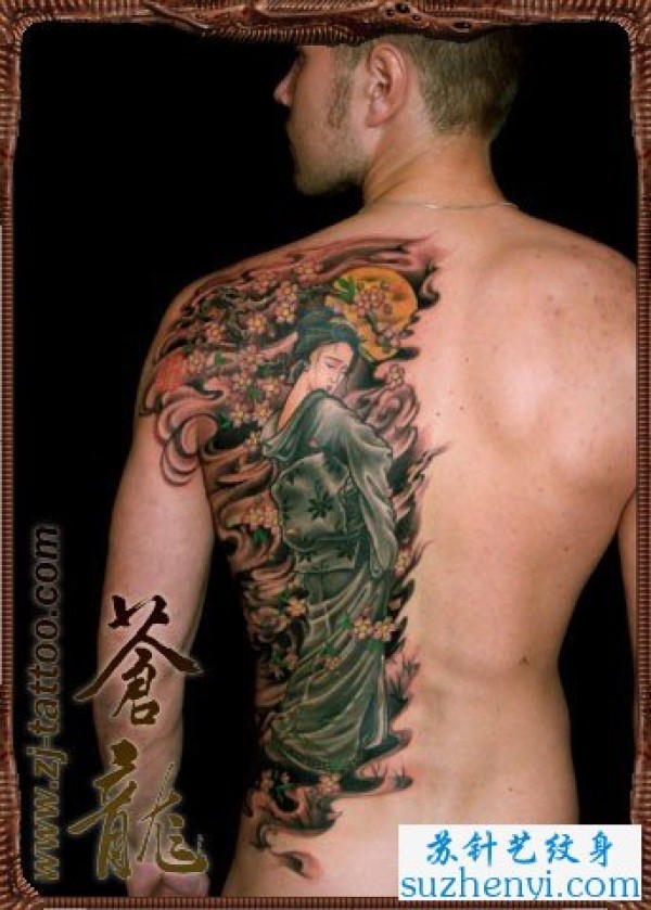经典后背日本和服美女纹身_后背纹身图案大全_纹身图吧