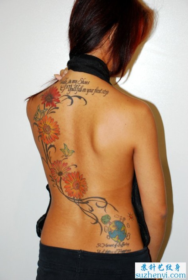 背部藤蔓雏菊纹身_后背纹身图案大全_纹身图吧