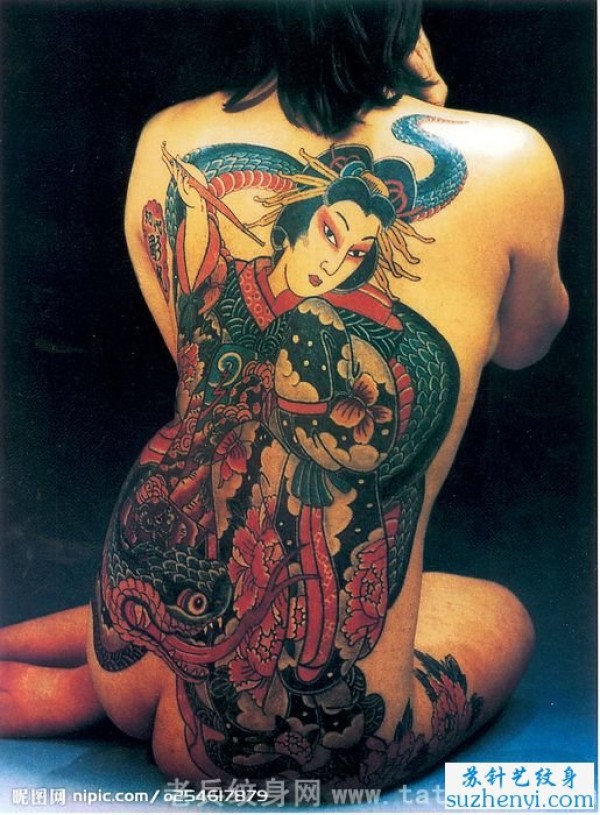 背部日本女姬纹身_后背纹身图案大全_纹身图吧