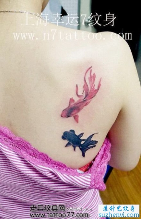 背部水墨画金鱼纹身_后背纹身图案大全_纹身图吧