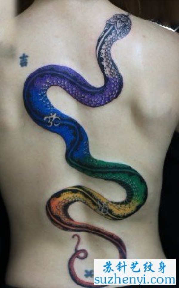 背部彩色蛇纹身图案纹身图片_后背纹身图案大全_纹身图吧