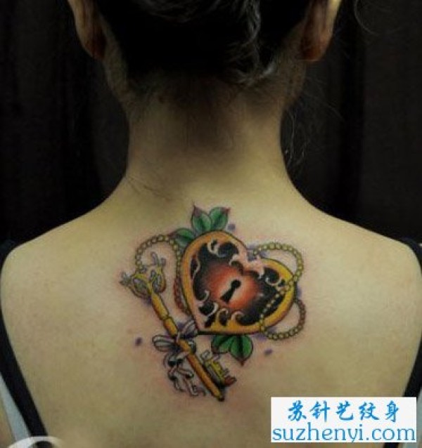 背部钥匙与爱心锁纹身_后背纹身图案大全_纹身图吧