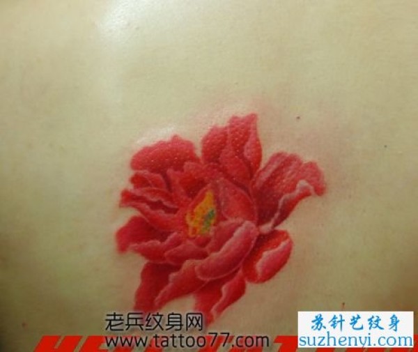 背部彩色牡丹花纹身_后背纹身图案大全_纹身图吧